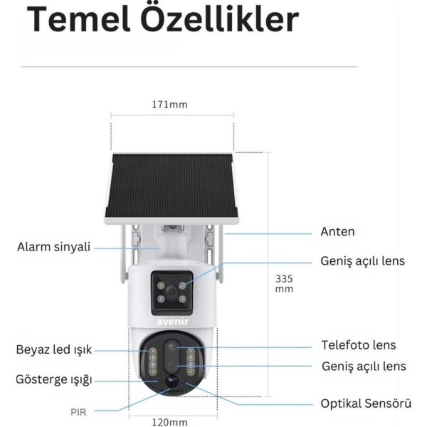 Avenir AV-S429 6mp 2 Kameralı 3 Ekranlı Solar Ptz 4g Sim Kartlı Kamera