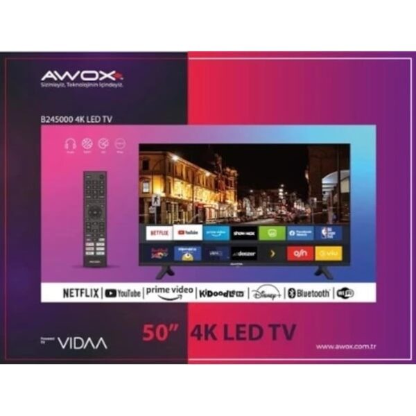 Awox B245000 50″ 127 Ekran Uydu Alıcılı 4K Ultra HD Smart LED TV