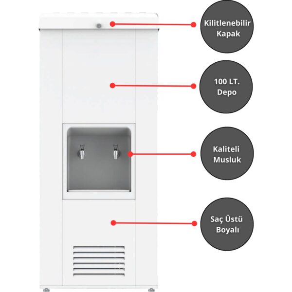 Evora Sanayi Tipi Sebil 100 Lt. Soğutmalı Arıtmalı Beyaz Boyalı Endüstriyel Su Sebili