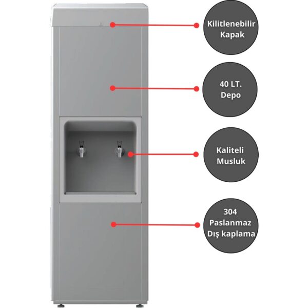 Evora Sanayi Tipi Sebil 40 Litre Soğutmalı Arıtmalı Paslanmaz Endüstriyel Su Sebili