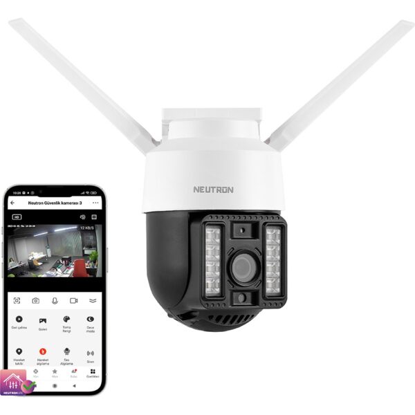 Neutron Gece Görüşlü LED Işıklı 360° Dönebilen Alarmlı Ptz Dış Ortam Kamerası – App ile Kontrol