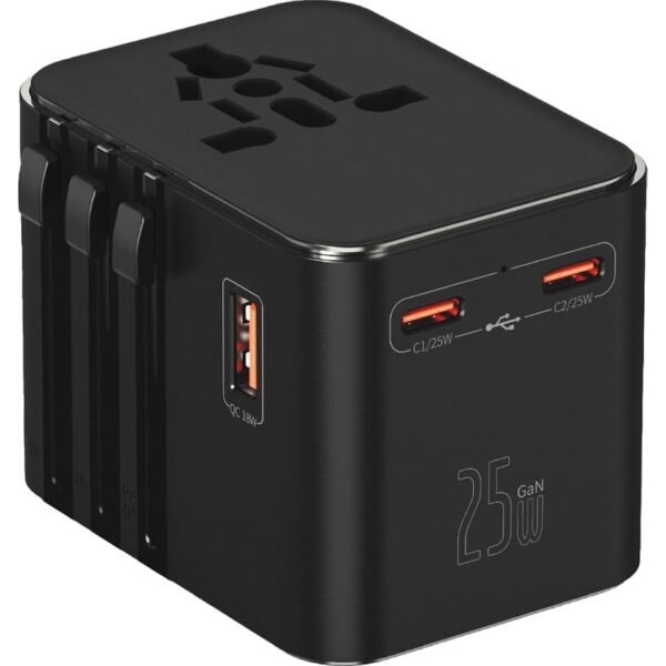 25W Şarj Cihazı ve 1x USB ve 2x Type-C Girişli Universal Seyahat Adaptörü, Priz Dönüştürücü 200’DEN Fazla Ülke ile Uyumlu, Abd, Ingiltere, Aus, Ab