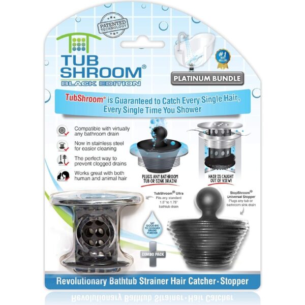 Küvet Gider Süzgeci, Kombo Paket, Silikon Tıkaçlı, Siyah Krom – Banyo Gider Için Gider Koruyucu ve Saç Tutucu, 3,8 cm – 4,4 cm Küvet ve Duş Gideri Için Uygundur