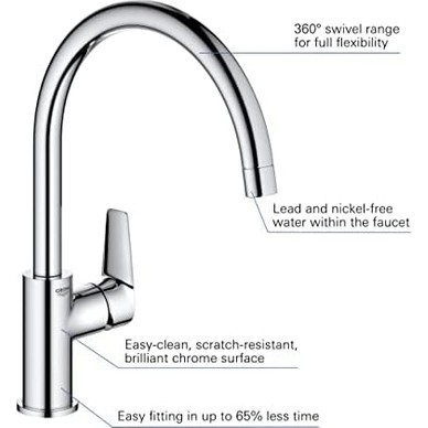 Focus M41 – Mutfak Armatürü, 1 Çelik Türü, Musluk Mutfak Çıkış Yüksekliği 160 Mm, Musluk Bataryası Mutfak 360° Döndürülebilir, Krom, 31806000