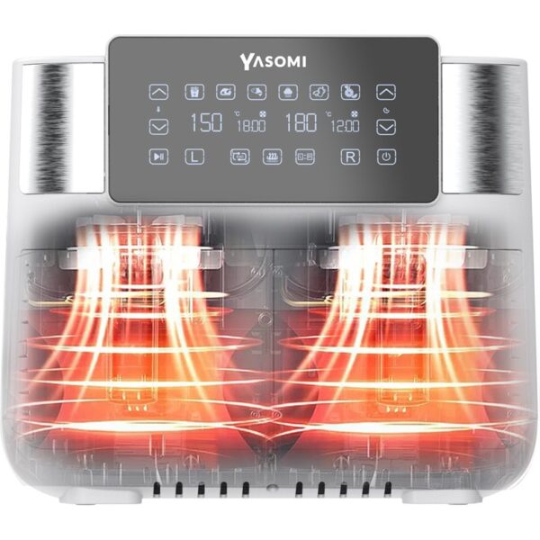 Yasomi Y80 Beyaz 8 Litre 2850W Çift Hazneli ve Çift Motorlu Dokunmatik Airfryer Fritöz