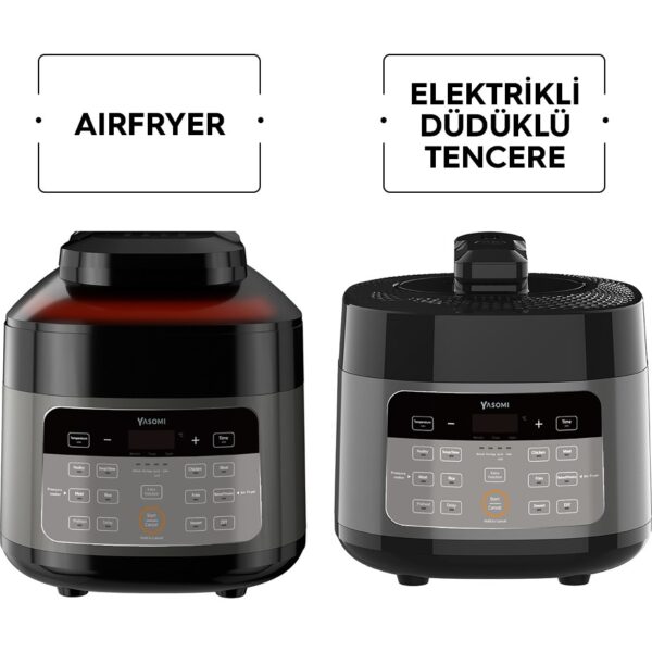 Yasomi Y85 Multi Cooker 2 Si 1 Arada Airfryer Fritöz ve Elektrikli Düdüklü Tencere (Yasomi Türkiye Garantili)
