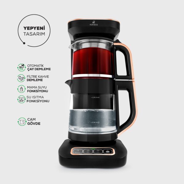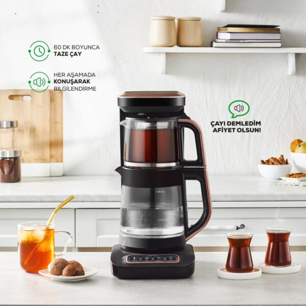 Karaca Robotea Pro 4 in 1 Konuşan Cam Çay Makinesi Black Copper