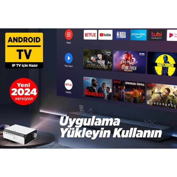 Vankyo Sunspark 500W Android TV 1080P Destekli Projeksiyon Cihazı 5G Wi-Fi + 5.1 Bluetooth – LCD LED – 240 Inç Yansıtma-Dahili Hoparlör-PS5/XBOX/HDMI/USB/VGA/AV