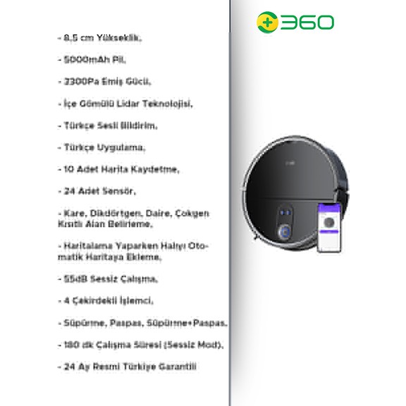 360 S10, akıllı sensörleri sayesinde evinizdeki engelleri algılar ve etrafında dolaşırken çarpma riskini en aza indirir. Ayrıca, Wi-Fi bağlantısı sayesinde uzaktan kontrol edilebilir ve programlanabilir.