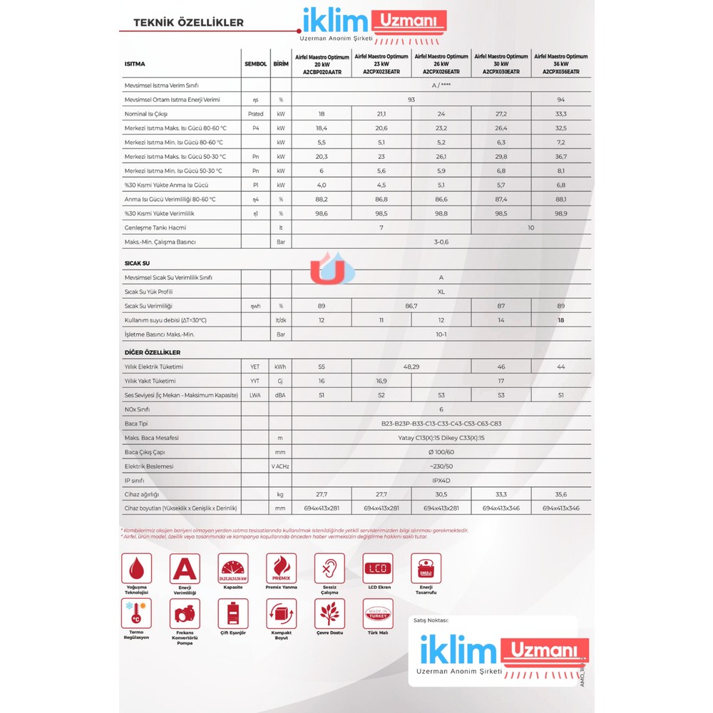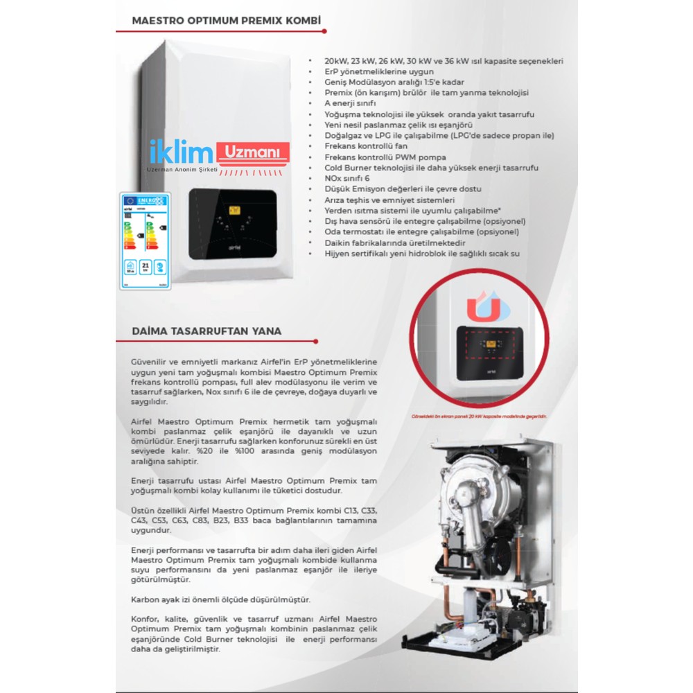 Airfel Maestro Optimum 20/24 Kw (17.000) Kcal Tam Yoğuşmalı Kombi