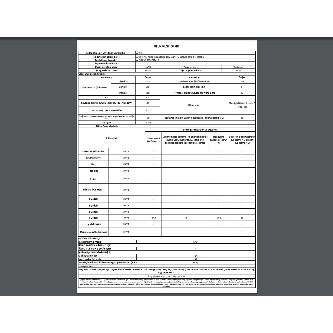 Altus Al 709 Nfe E Enerji Sınıfı 260 Lt No-Frost Derin Dondurucu Beyaz