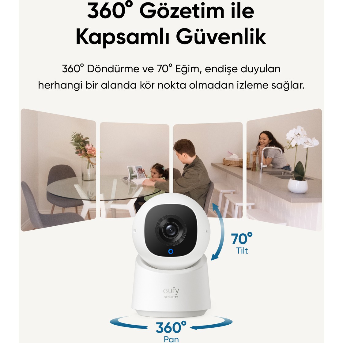Anker Eufy Security C220 360 Derece Dönebilen Kızılötesi Gece Görüşlü IP Kamera – T8W1 (Anker Türkiye Garantili)