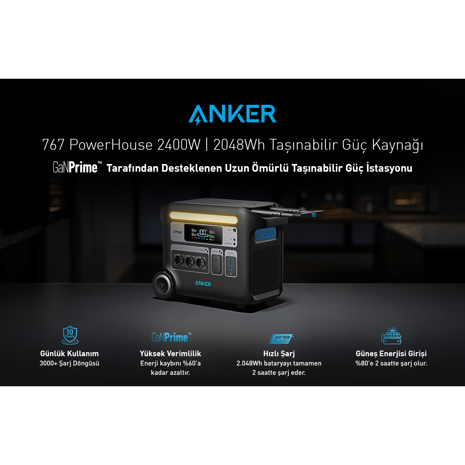 Anker PowerHouse 767 Taşınabilir Güç Kaynağı 2048Wh 2400W Ev Karavan ve Dış Mekan Kullanımı İçin LiFePO4 Pilli Jeneratör – A1780 (Anker Türkiye Garantili)