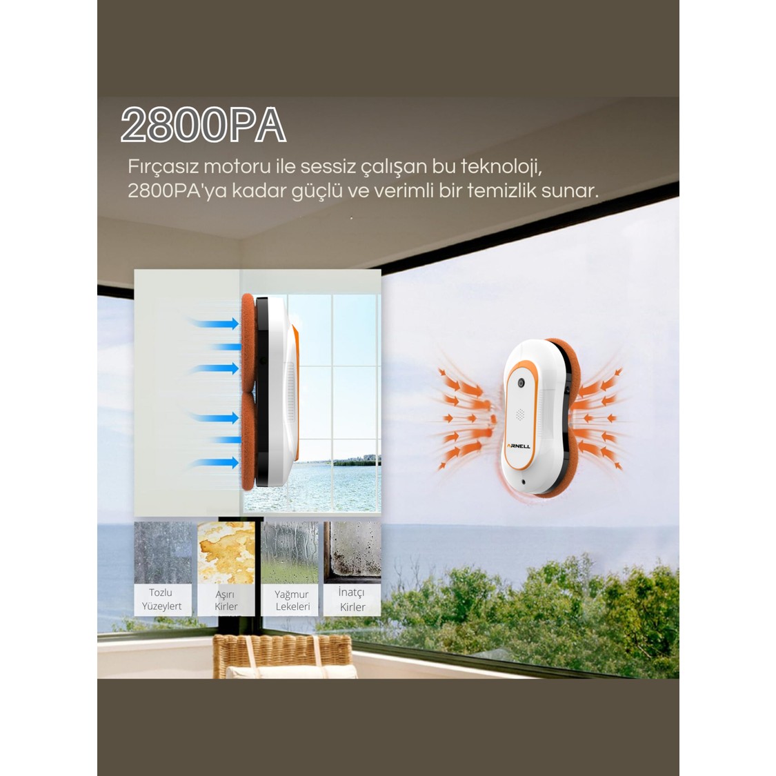 Arnell Cam Silme Robotu Cambaz Aktive Akıllı Cam Temizleme Robotu WCR-2310Y