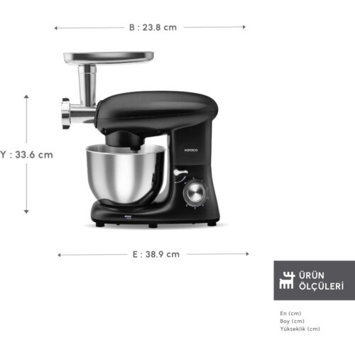 Karaca Multichef Stand Mikser Shiny Black Mutfak Şefi 1900W 5,5 Lt (Kıyma Çekme /sucuk-Sosis/içli Köfte Aparatlı)