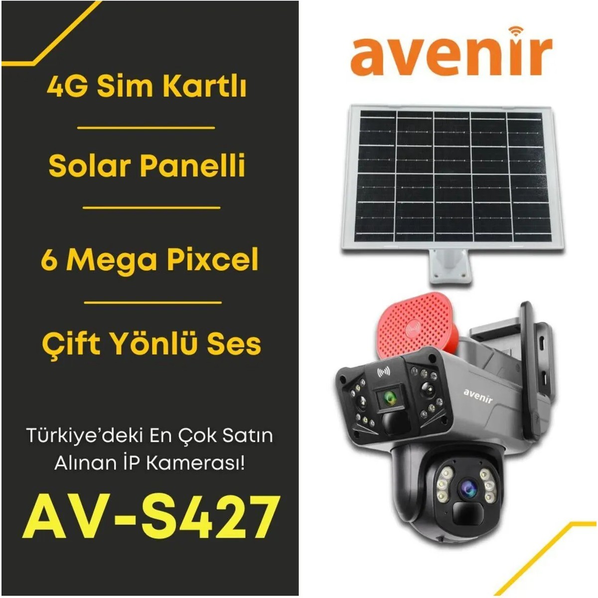Avenir AV-S427 3mp+3mp = 6mp ve 2 Kameralı Solar Ptz 4g Sim Kartlı Güneş Enerjili Kamera