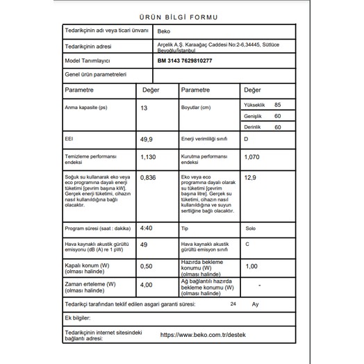 Beko Bm 3143 D Enerji Sınıfı 3 Programlı Bulaşık Makinesi için 6 değerlendirme