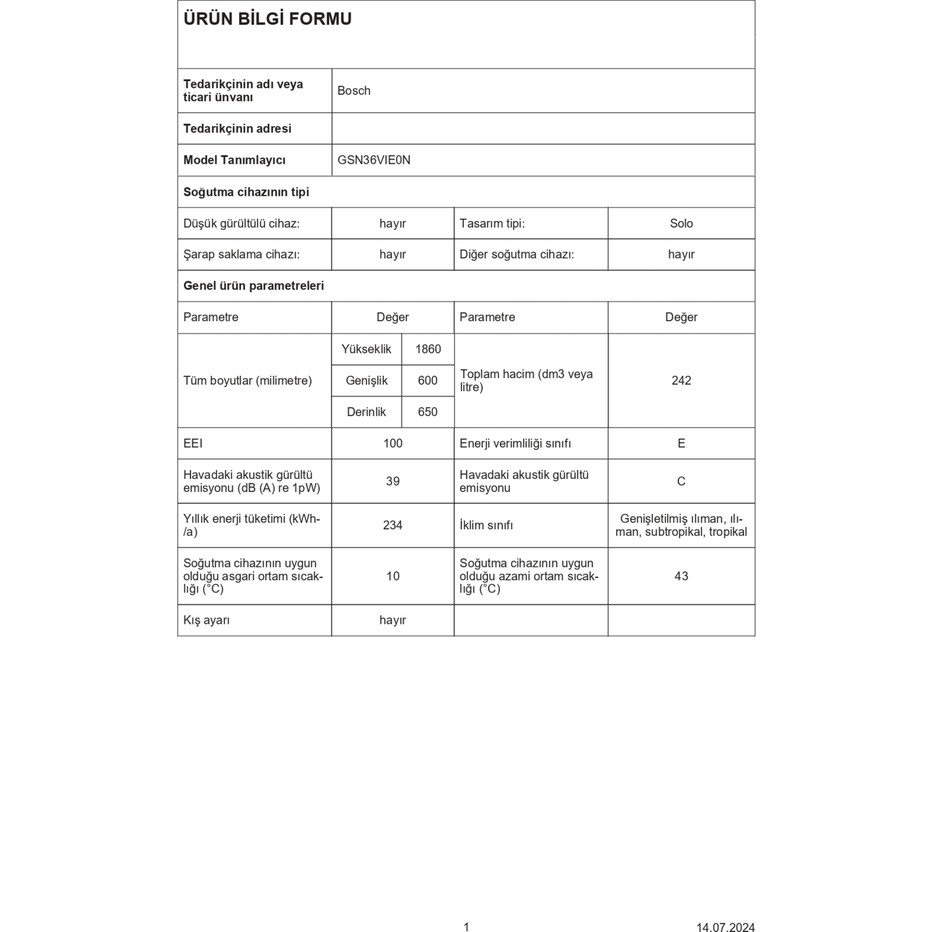 Bosch GSN36VIE0N 7 Çekmeceli Inox Derin Dondurucu için 1 değerlendirme
