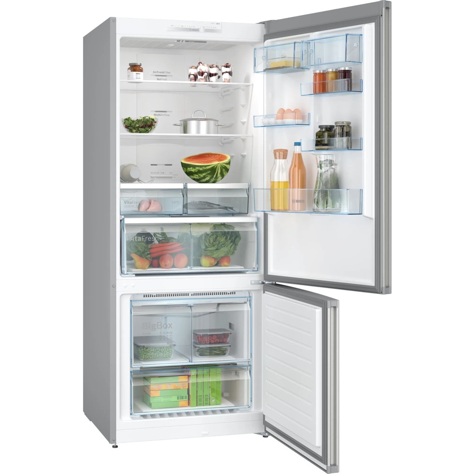 XL kapasiteli buzdolabı, yiyecek ve içecekleriniz için geniş alan imkanı sağlar. XL Kapasiteli Buzdolabı. >Bosch XL kapasiteli buzdolapları büyük aileler ve haftalık market alışverişi yapanlar için geniş depolama alanı sunar. Her türlü gıda ürünü ve hatta büyük tencereler için dahi yeterli alana sahip buzdolapları aynı zamanda mutfağınıza da mükemmel şekilde uyum sağlarlar. Eğer misafir ağırlamayı ve kalabalık sofraları seviyorsanız, XL kapasiteli buzdolapları tam size göre! Uzun yıllar boyunca sorunsuz çalışan LED aydınlatma buzdolabının içinde homojen bir aydınlatma sağlar ve parlama yapmaz. Buzdolabınızın içindekileri rahatça görebilmeniz için ideal parlaklık Tasarım ve enerji verimliliğinin başarılı kombinasyonuna parlak bir örnek; buzdolabı içindeki LED ışıklı panel. Optimal yerleşimi sayesinde iç bölümü çok iyi aydınlatır ve çok az enerji tüketir. Ayrıca uzun yıllar boyunca sorunsuz çalışır. VarioZone: İhtiyaca göre düzenlenebilen raflar ve çekmeceler sayesinde daha fazla esneklik. Dondurucu alanında tam esneklik VarioZone ihtiyaca göre düzenlenebilen raflar ve çekmeceler sayesinde dondurucu alanında büyük bir esneklik sağlar. Daha fazla alan oluşturmak için derin dondurucu bölmesindeki rafları kolayca kaldırabilirsiniz. Böylece çok katlı bir kek ya da bütün bir hindiyi kolayca muhafaza edersiniz. BigBox: Dondurulmuş büyük gıdalarınız için ekstra alan. Daha geniş saklama alanı BigBox size çok geniş hacimli bir alan sunar. Bu sayede örneğin büyük bütün bir hindiyi veya uzun bir kuzu kolunu saklayabilirsiniz. Üstelik BigBox bölmesinin üst çekmecesini ve aradaki cam rafı kaldırabilir ve böylece daha uzun yiyeceklere yer açabilirsiniz. VarioZone özelliği sayesinde dondurucu bölmesindeki tüm çekmeceler kolayca çıkarılabilir ve böylece gerektiğinde daha fazla alan kazanılır. Bu alanda isterseniz 3 katlı kocaman bir doğumgünü pastasını saklayabilirsiniz. VarioZone size geniş ve esnek bir dondurucu alanı sunar. Çekilebilen cam raflar sayesinde buzdolabındaki her şeye rahatça ulaşılabilir, yiyecekler kolayca alınıp geri konulabilir.