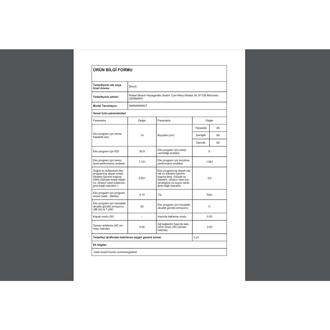Bosch SMS4IMW62T E Enerji Sınıfı 6 Programlı 14 Kişilik Bulaşık Makinesi