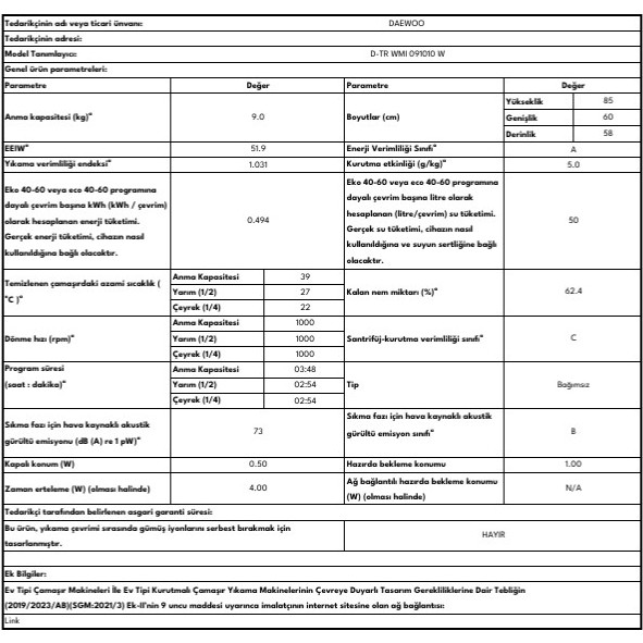 Daewoo D-Tr Wmı 091010 W 9 kg Çamaşır Makinesi için 3 değerlendirme