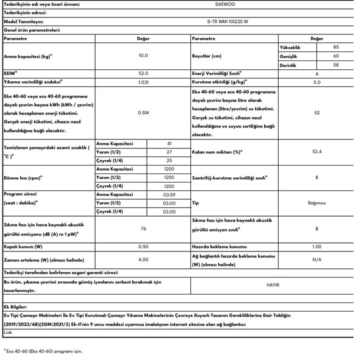 “Daewoo D-Tr Wmı 101220 W 10 kg Çamaşır Makinesi” için yorum yapan ilk kişi siz olun Yanıtı iptal et