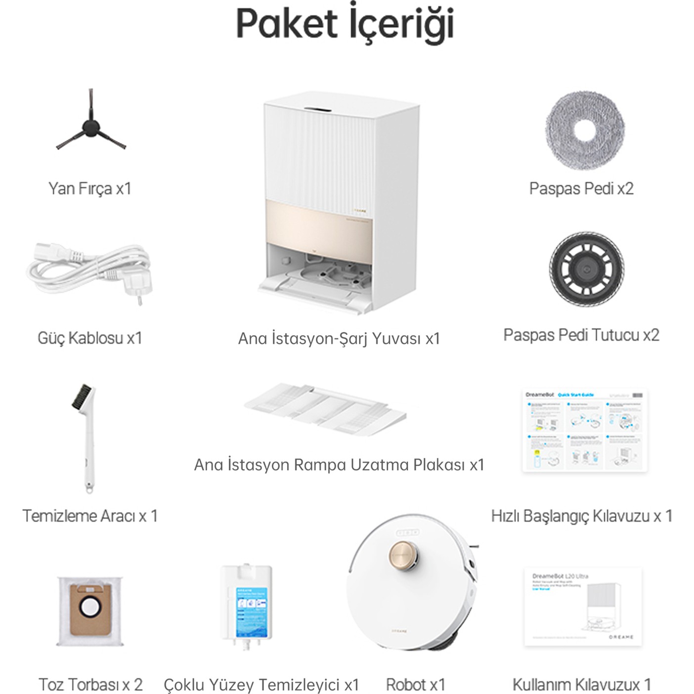 Dreame L20 Ultra Robot Süpürge Beyaz, Otomatik Paspas Çıkarma ve Kaldırma, Yıkama ve Kurutma, 7000Pa Emiş, Kendi Kendini Boşaltma, Kendi Kendini Doldurma, AI Engellerden Kaçınma