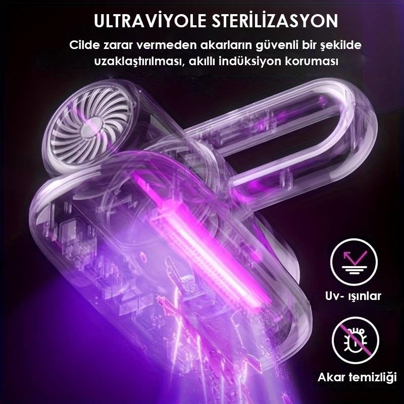 Enshall Şarjlı Mini Uv-C Işınlı El Süpürgesi Çarşaf Yastık Tüy Temizleme Makinesi 5000-8000PA 100W