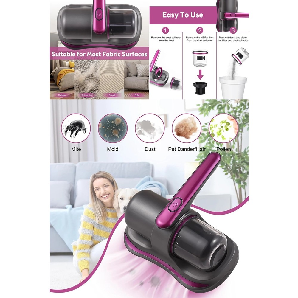 Enshall Şarjlı Mini Uv-C Işınlı El Süpürgesi Çarşaf Yastık Tüy Temizleme Makinesi 5000-8000PA 100W için 3 değerlendirme