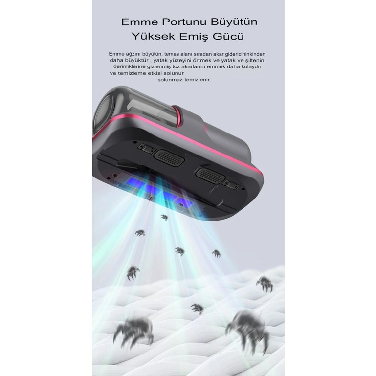 ENSİGA Şarjlı Kablosuz Yatak Kanepe Halı Toz Tüy Süpürge Uv Işınlı Ev El Vakum Temizleme Toz Giderme