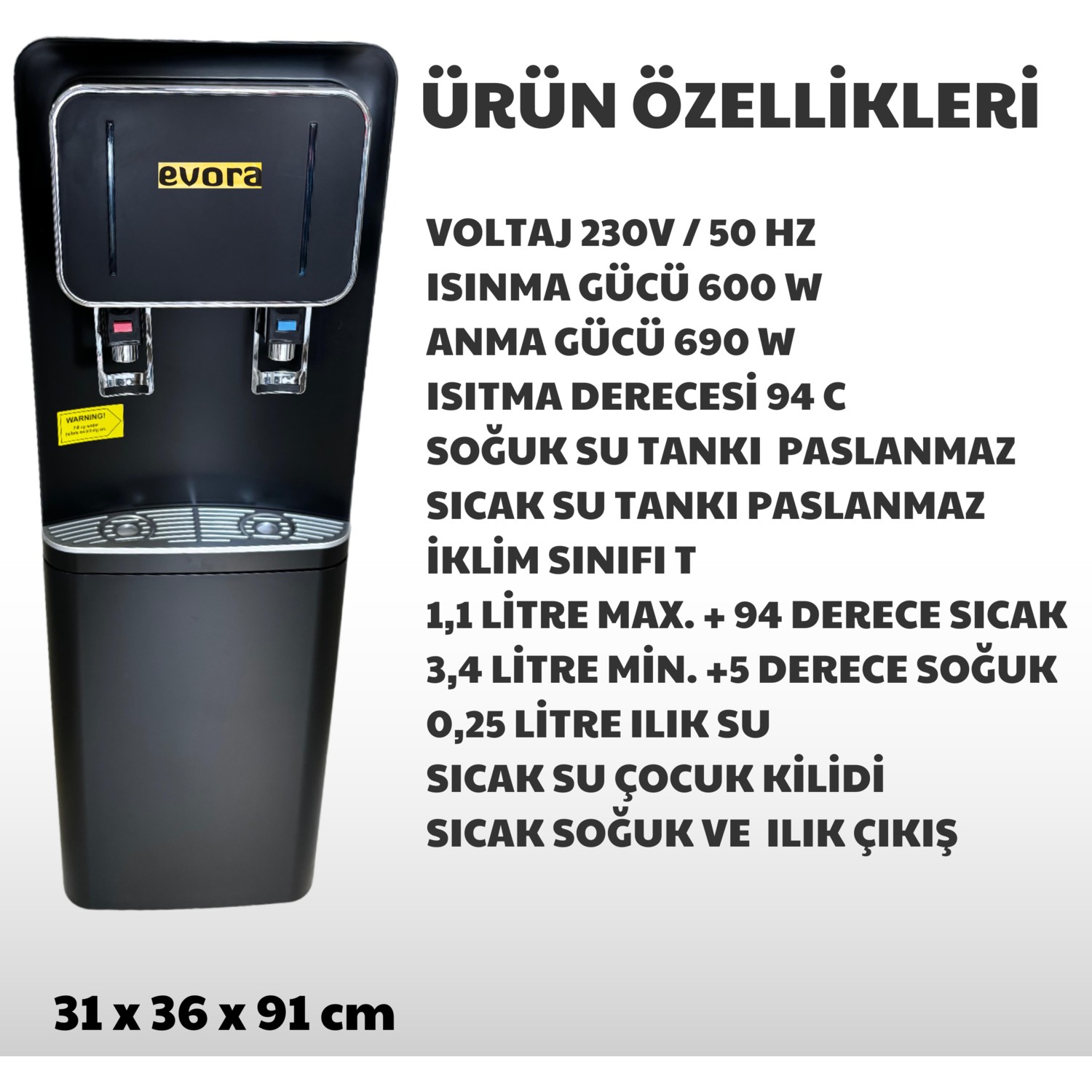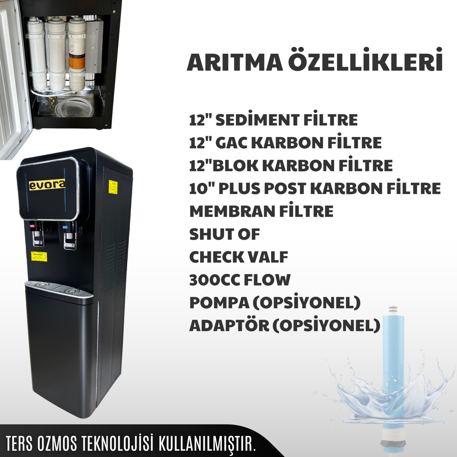 Evora Ev Tipi Ofis Tipi Sıcak Soğuk Arıtmalı Su Sebili Siyah Premium