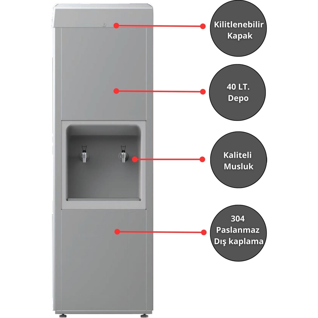 40 litrelik geniş su kapasitesi sayesinde yoğun kullanım alanlarında rahatlıkla kullanılabilir. Soğutma özelliği sayesinde içme suyunu istenilen sıcaklıkta tutabilir ve her zaman serin bir içecek sunabilir. Ayrıca arıtma özelliği sayesinde içme suyunun temiz ve sağlıklı olmasını sağlar.
