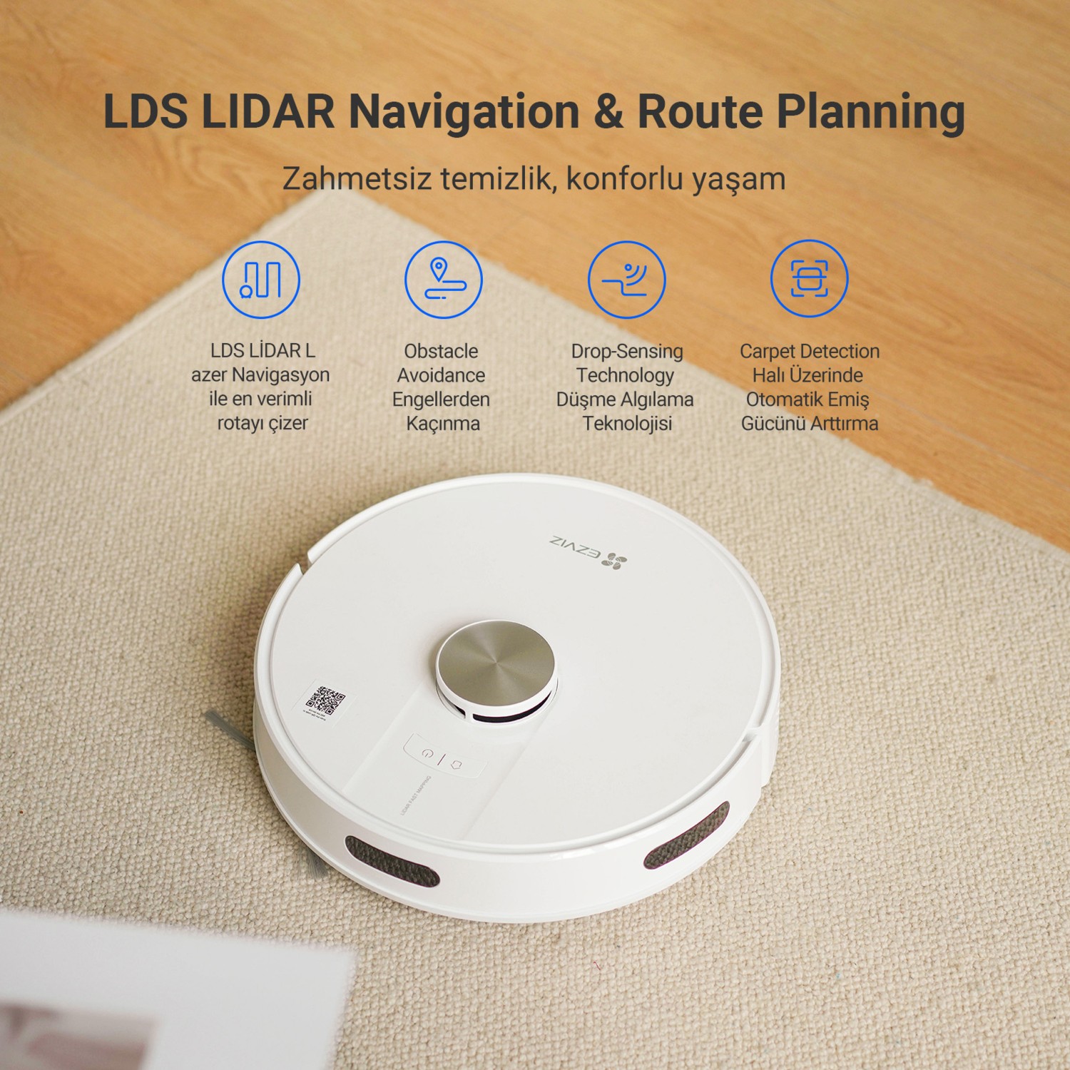 Ezviz Re4 Akıllı Robot Süpürge Mop + Süpürme