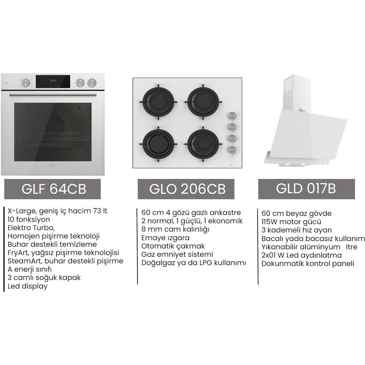 GL General Steamart Beyaz Ankastre Set Buhar Destekli (Gld 017B-GLF 64CB-GLO 206CB)
