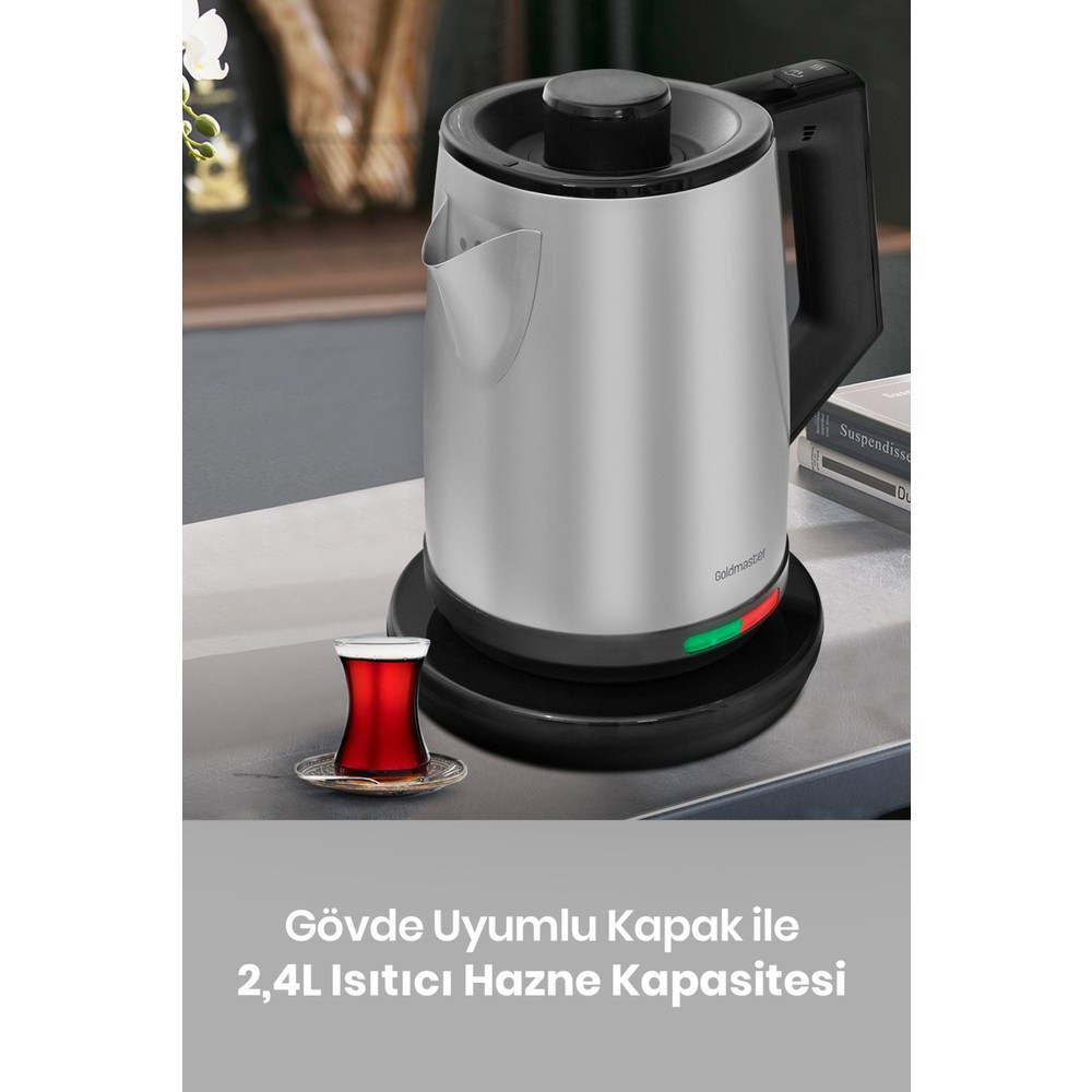 Goldmaster Inox Avantajlı Ikili Set Paketi Paslanmaz Çelik Çay Makinesi ve Su Isıtıcısı Tost Izgara Makinesi