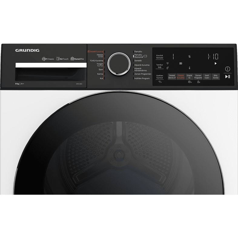 Grundig Gpdh 9854 A Enerji Sınıfı 9kg Isı Pompalı Kurutma Makinesi Beyaz, enerji verimliliği sağlayan A+++ enerji sınıfına sahip bir kurutma makinesidir. 9 kg kapasitesi ile geniş bir yıkama yüküne uygun olan bu makine, ısı pompalı teknoloji sayesinde çamaşırlarınızı nazikçe kuruturken enerji tasarrufu da sağlar. Beyaz renkli şık tasarımıyla her türlü mutfak veya çamaşır odası dekoruna uyum sağlar. Grundig kalitesi ve güvencesiyle üretilen bu kurutma makinesi, kullanıcı dostu özellikleri ve çeşitli program seçenekleri ile kullanımı kolay ve pratik bir cihazdır.