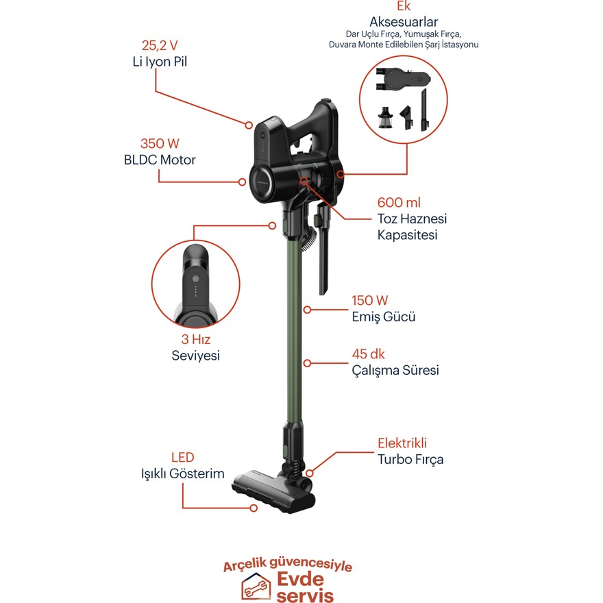 Grundig VCP 5131 Kablosuz Dikey Şarjlı Süpürge için 3 değerlendirme
