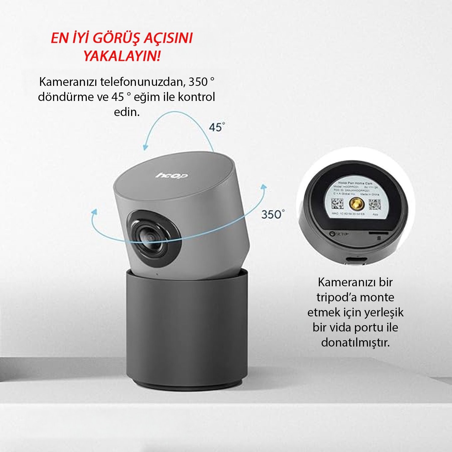 Hoop Plus Akıllı Ev Tipi Wifi Güvenlik Kamerası, evinizin güvenliğini sağlamak için tasarlanmış bir üründür. Wifi bağlantısı sayesinde her an her yerden evinizin güvenliğini kontrol edebilirsiniz. Yüksek çözünürlüklü görüntü kalitesi sayesinde net ve keskin görüntüler elde edebilirsiniz. Ayrıca hareket algılama özelliği sayesinde evinizde herhangi bir hareket algılandığında anında bildirim alabilirsiniz. Gece görüşü özelliği ile gece de evinizin güvenliğini sağlayabilirsiniz. Hoop Plus Akıllı Ev Tipi Wifi Güvenlik Kamerası, kolay kurulumu ve kullanımı ile evinizin güvenliğini sağlamanıza yardımcı olacak bir üründür.