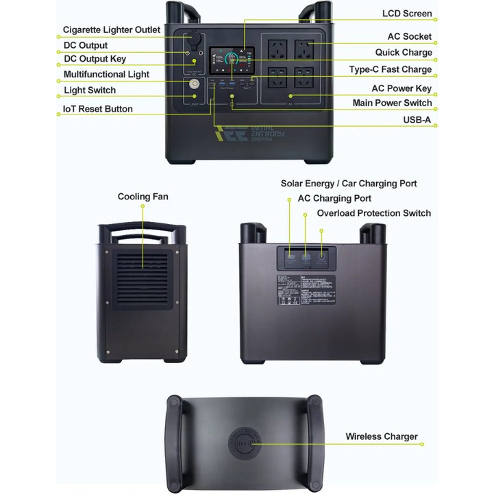 Initial Entropy Energy 1920WH Taşınabilir Güç Kaynağı %99.99 Mppt Bms Çoklu Koruma Kablosuz Şarj – SINGO2000PRO