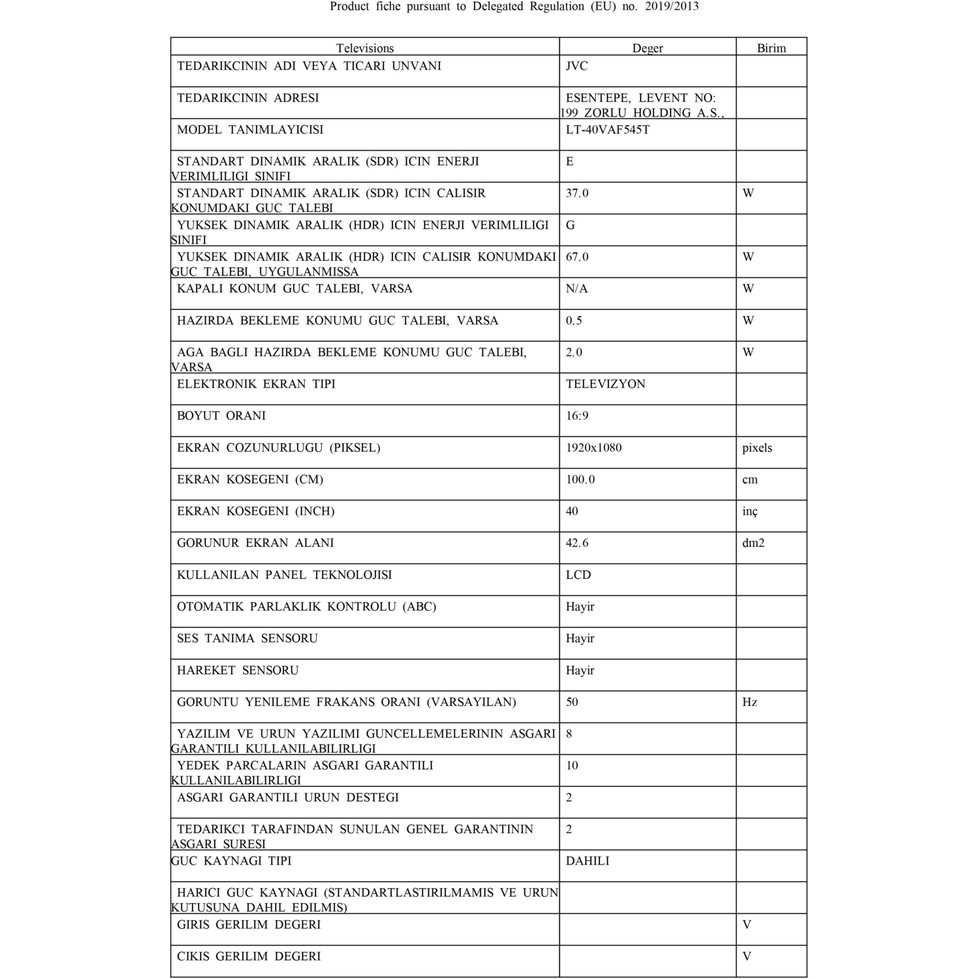 JVC LT-40VAF545T 40” 101 Ekran Uydu Alıcılı Full HD Android Smart TV için 1 değerlendirme