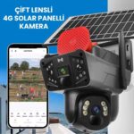 Kadraj Solar Panelli Güneş Enerjili Sim Kartlı 4g 6 mp Çift Lensli Ptz Güvenlik Kamerası – Hareket Algılama 128 GB Sd Kart