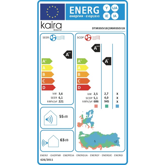 Kaira DTXR35E A++ 12000 BTU Wifi Inverter Duvar Tipi Klima (Montaj Dahil)