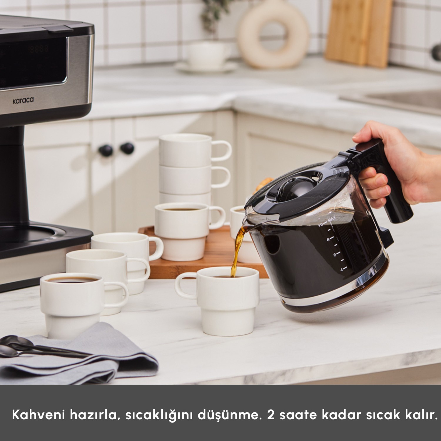 Makine çok güçlü hızlı bir şekilde filtre kahve hazırladı ve gayet güzeldi