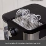 Karaca Coffee Art 2 In 1 Espresso ve Filtre Kahve Makinesi, hem espresso hem de filtre kahve yapabilme özelliğine sahip olan kullanışlı bir kahve makinesidir. 15 bar basınç ile espresso yapabilme imkanı sunarken, aynı zamanda filtre kahve hazırlamak için de uygun bir filtre sistemine sahiptir. 1.5 litre su haznesi ve 250 gram kahve çekirdeği kapasitesi ile kullanıcılarına pratik bir kullanım imkanı sunar. Ayrıca bu makine, kahve sıcaklığını ayarlayabilme özelliği ile de dikkat çekmektedir. Şık tasarımı ve kullanım kolaylığı ile Karaca Coffee Art 2 In 1 Espresso ve Filtre Kahve Makinesi, kahve tutkunları için ideal bir seçenektir.