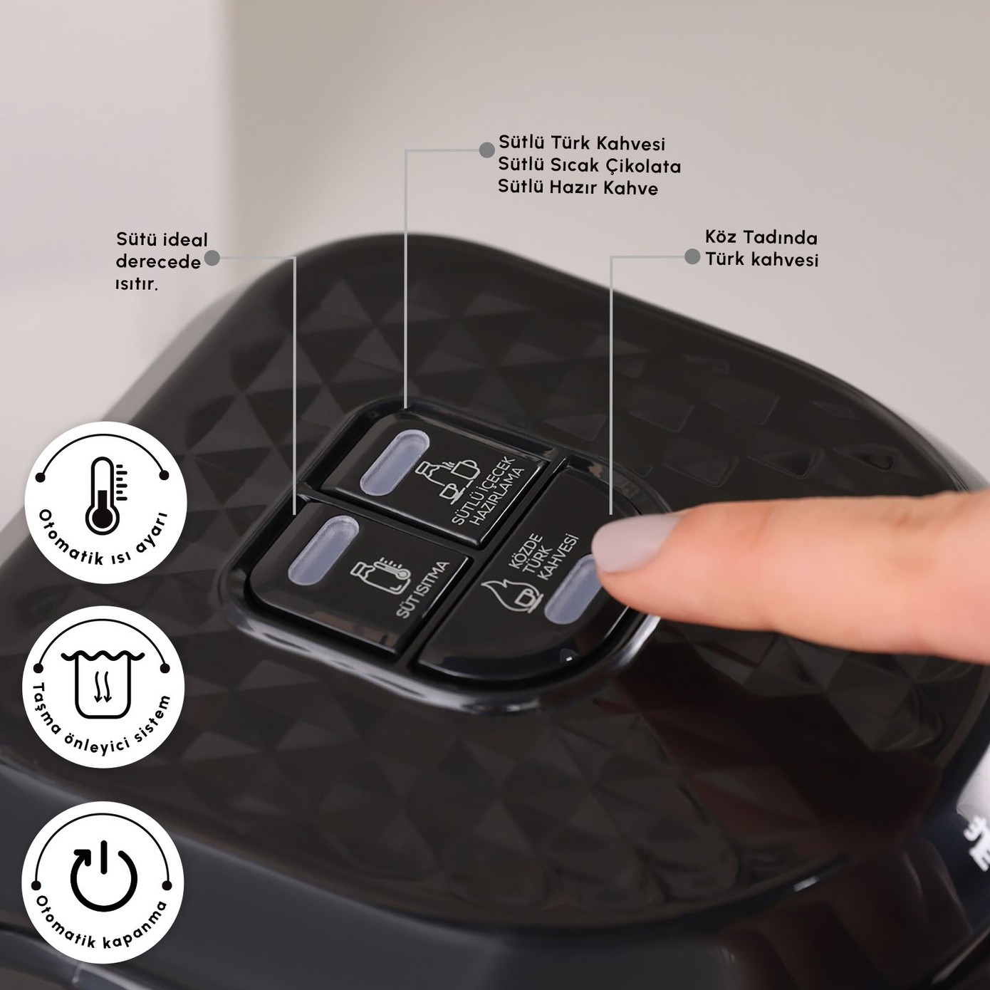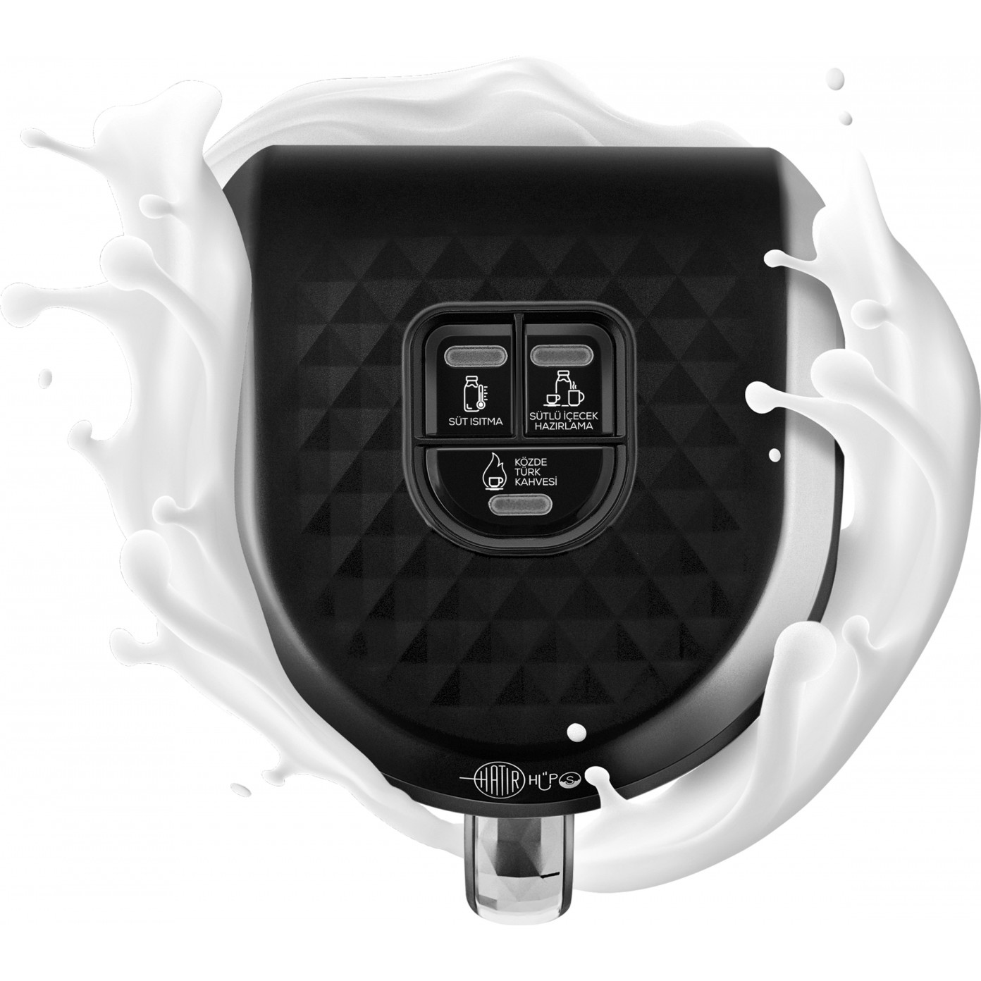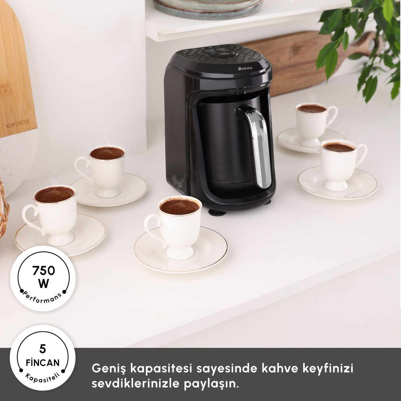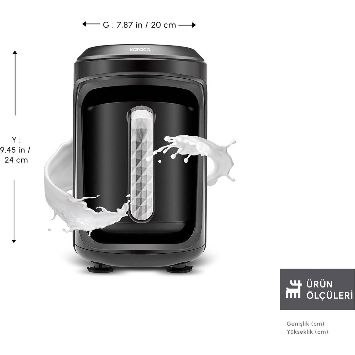 Karaca Hatır Hüps Quartz Közde Türk Kahvesi, Sütlü Türk Kahvesi, Sütlü İçecek Hazırlama Makinesi 5 Fincan Kapasiteli Bol Köpüklü Black Chrome
