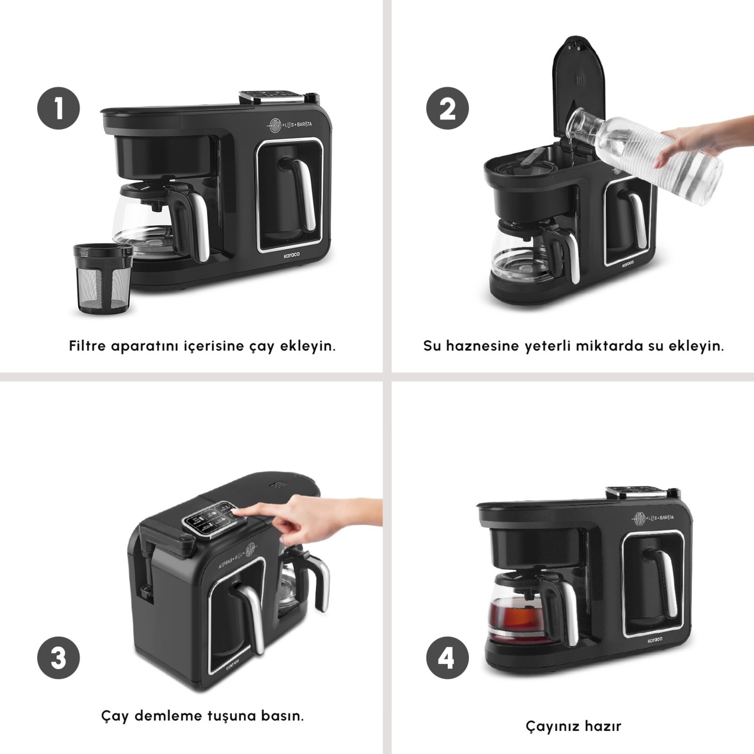 Ürün fonksiyonel oldukça iş görüyor. Kahveyi içimli ve köpüklü yapıyor. Filtre kahve haznesi genel filtre kahve makinelerine göre küçük. Çay demleme en çok merak ettiğim kısmıydı. Gayet güzel içimli bir çay oldu. Tek eksisi çay ve filtre kahve haznesinin aynı olması; alırken belliydi tabii ki zaten daha çok kahveciyim. Belki yedek bir cam hazne alınabilir. İçinde kahve filtresi bekletmemek gerekir diye düşünüyorum. Ama çok rahat ettim