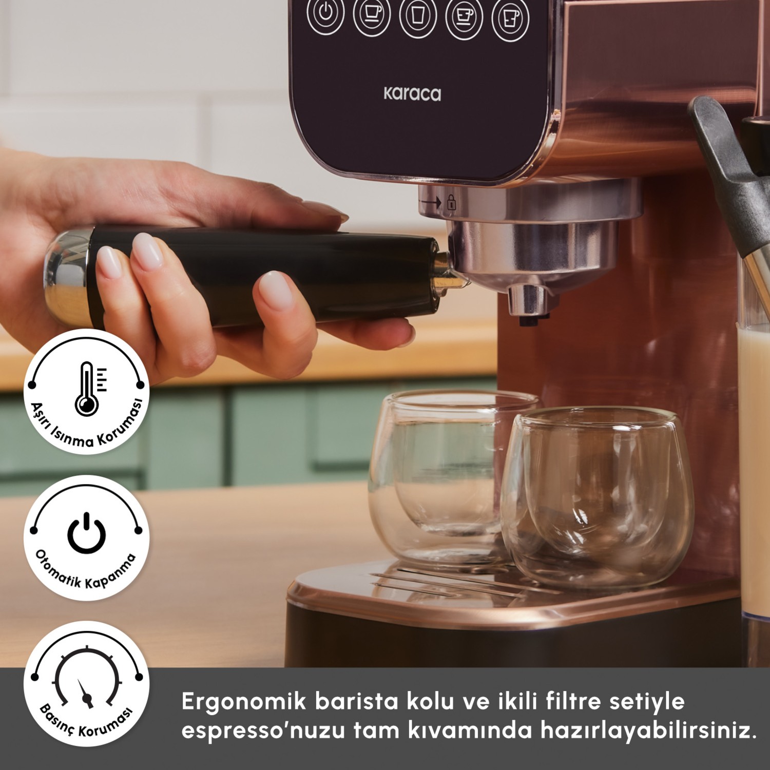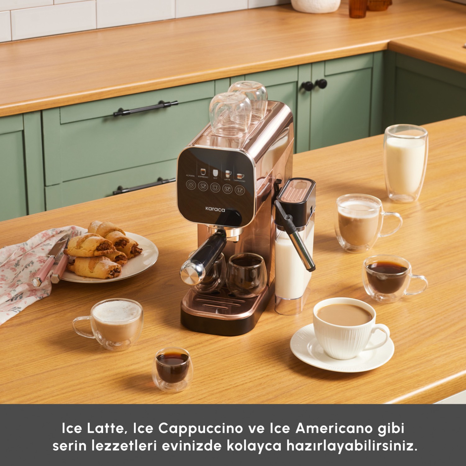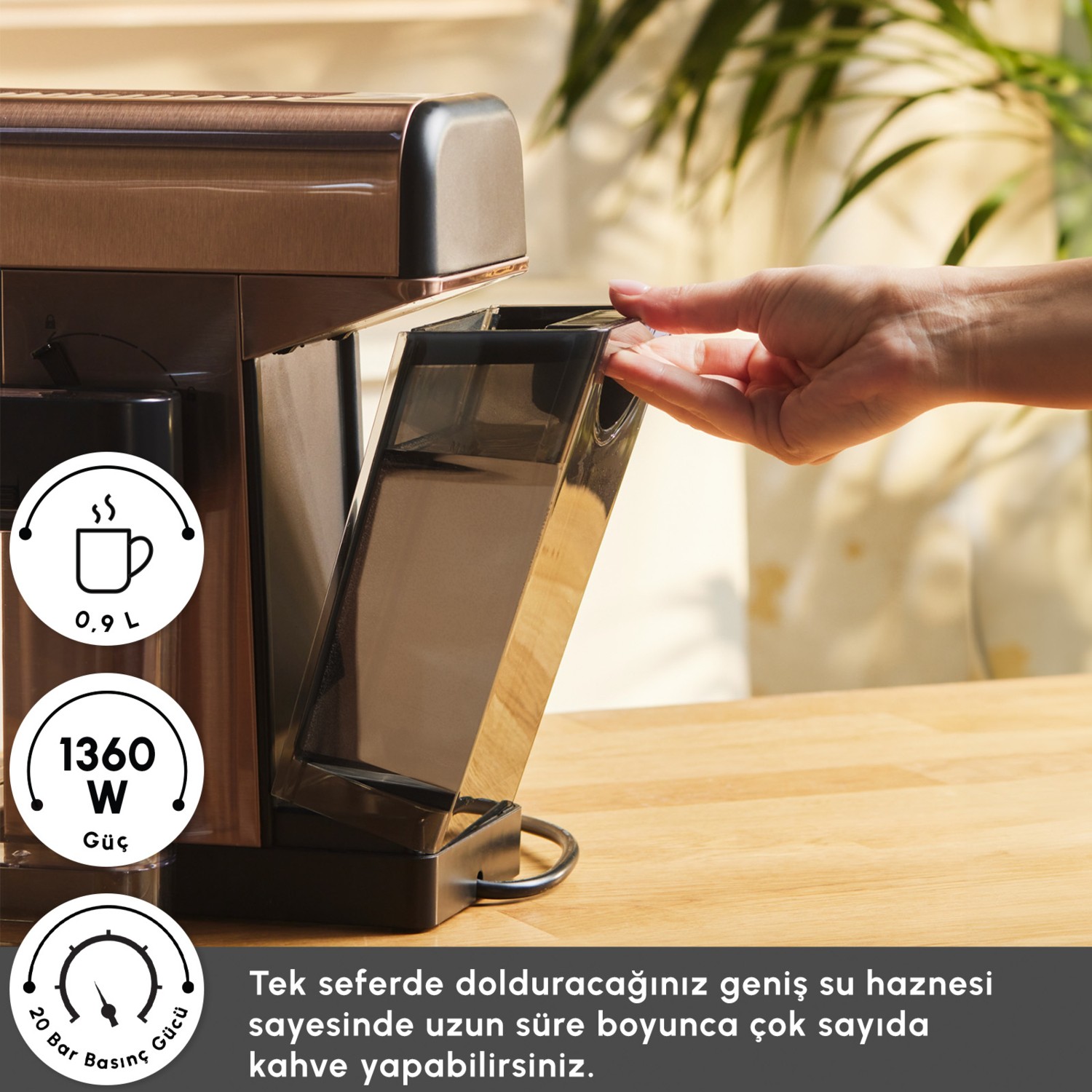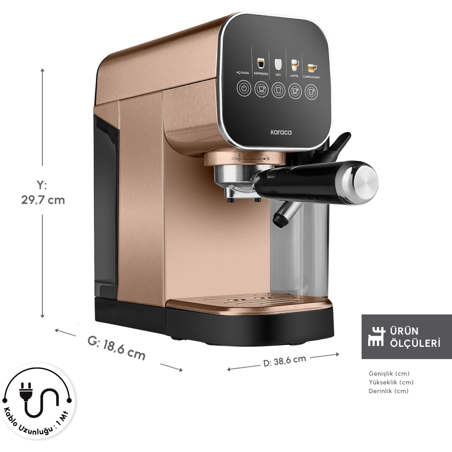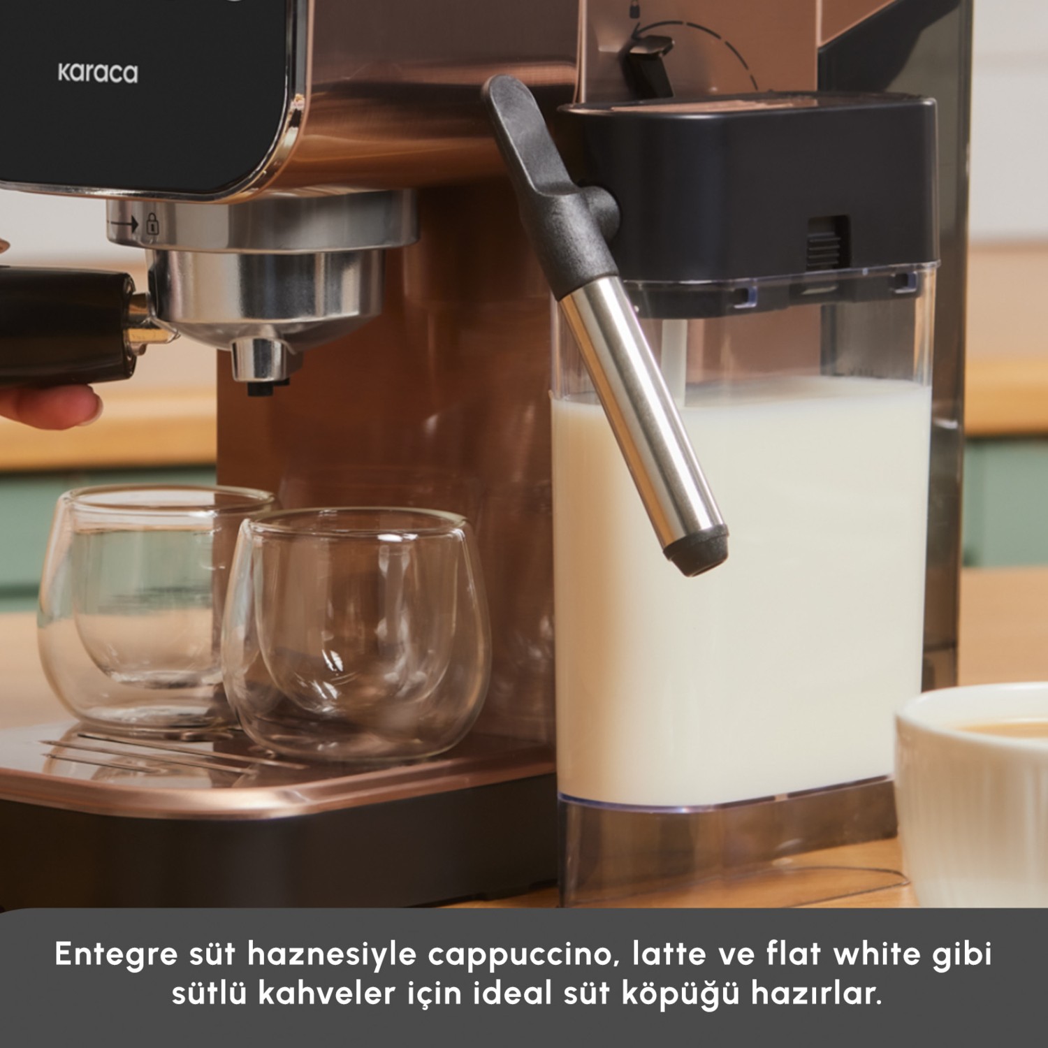 Karaca Mycaffee Barista S20 Entegre Süt Hazneli Otomatik Espresso ve Latte Makinesi Amber