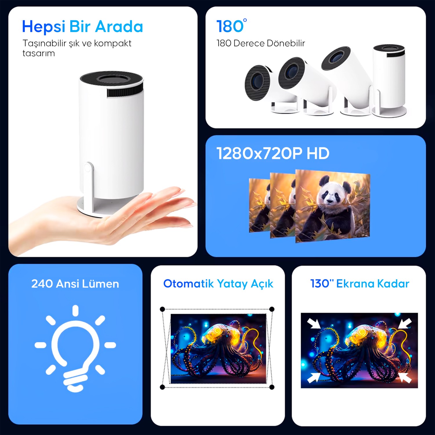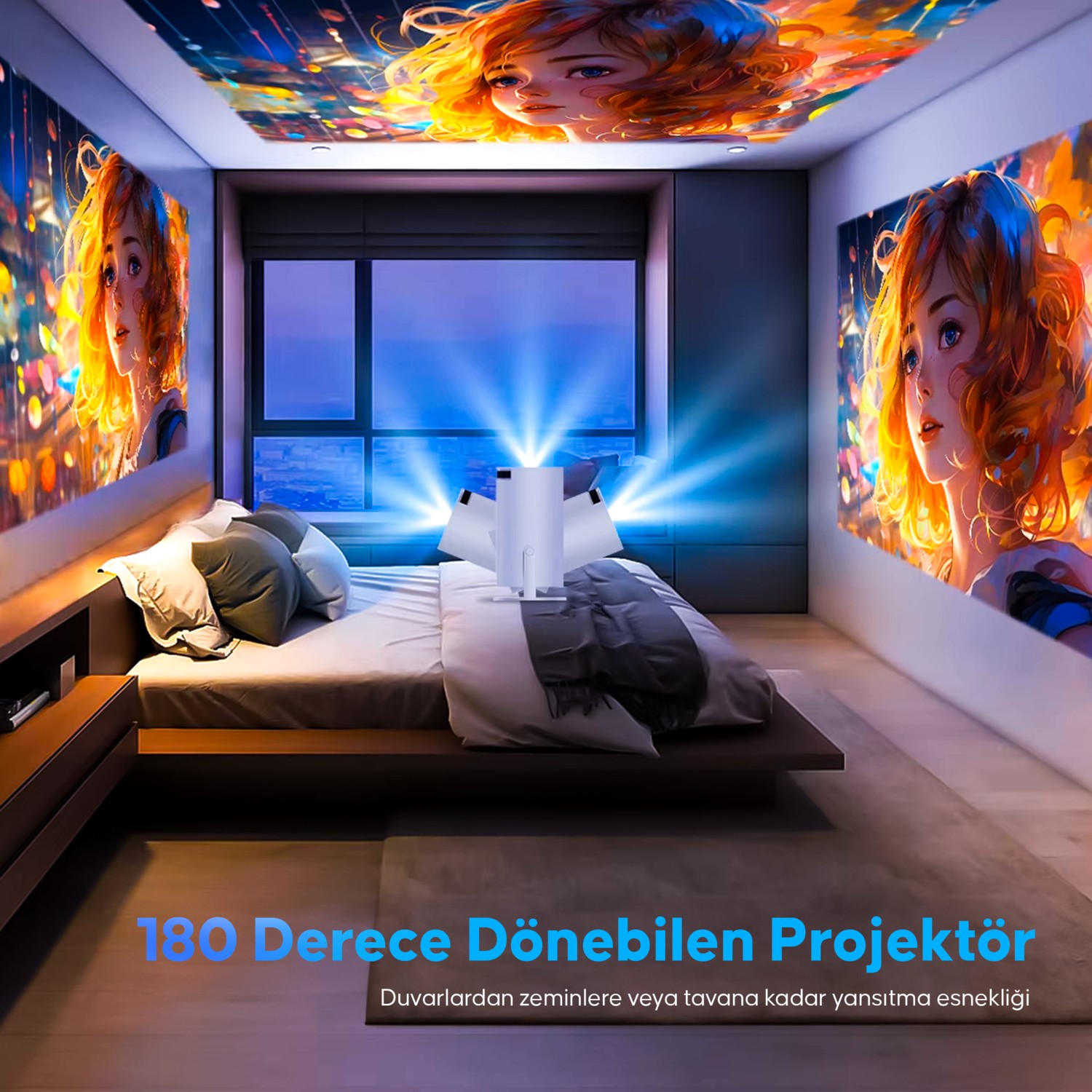 Robeve Mini Projektör | Android Tv Android Kurulu Full Hd Projeksiyon Projektör Wi-Fi ve Bluetooth Destekli | Sinema Keyfi | Taşınabilir ve Şık Tasarım 4K Projektör 4K Projeksiyon Cihazı