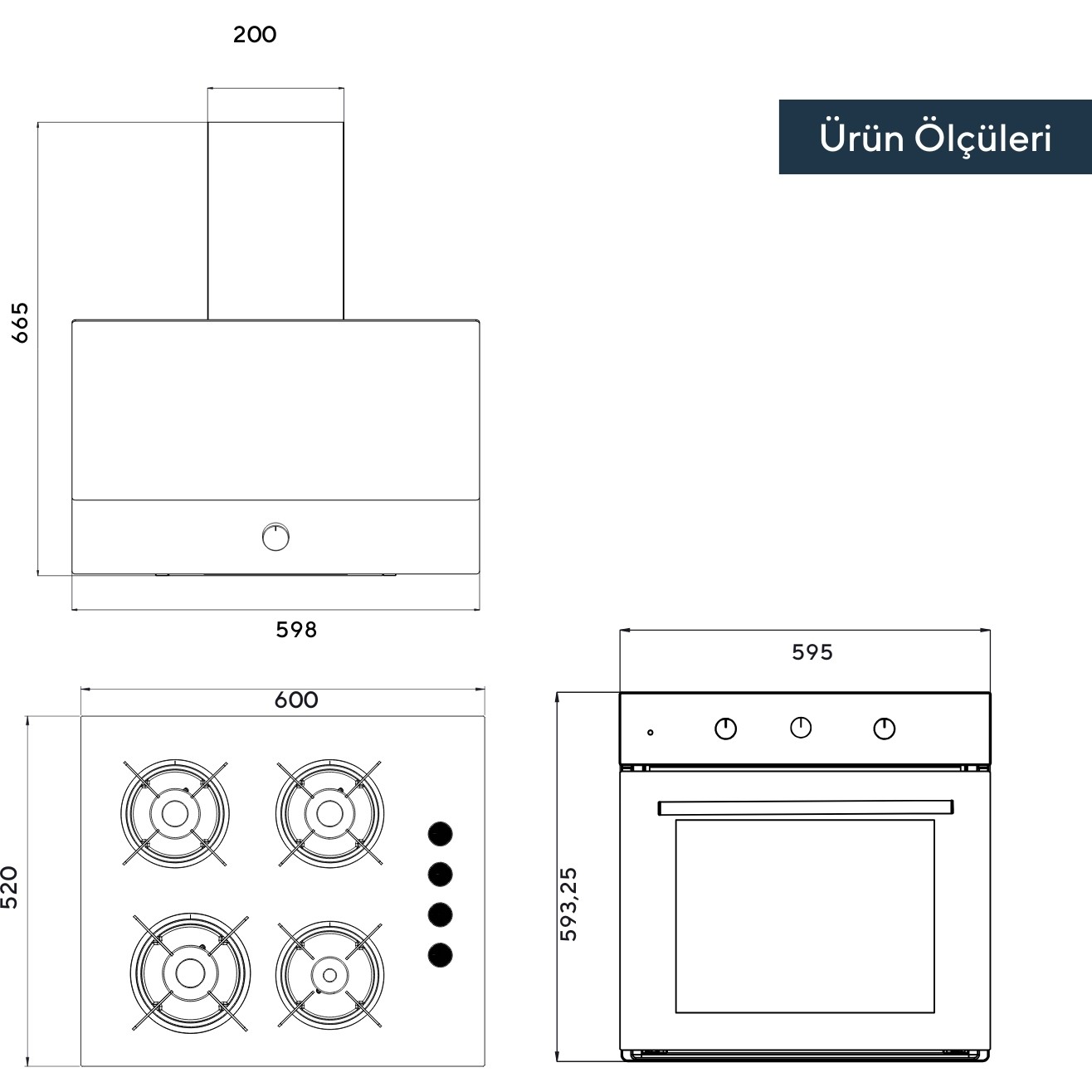 Kumtel Dizayn Antrasit Ankastre Set (Da6-830 Davlumbaz – Ko-40 Tahdf Ocak – B66-S2 Fırın) Yorumları