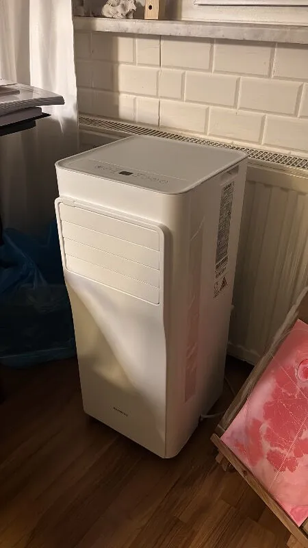 Hafif ve ufak. Soğutması gayet iyi, içerisini buzhane yapmıyor ama konfor şartlarına ulaştırıyor. Pencere aparatı içinde. Tam yükte 715 kw güç çekiyor. Kapasitesi diğer cihazlara göre düşük olduğundan daha sessiz. Üretici Midea. Eksi yanları; ısıtma modu yok, set değerine geldiğinde otomatik durmuyor, kompresörü durduruyor ama fan devam ediyor. Fan hızı ayarlanamiyor (nem alma modunda düşük fan hızında kullanılabilir)